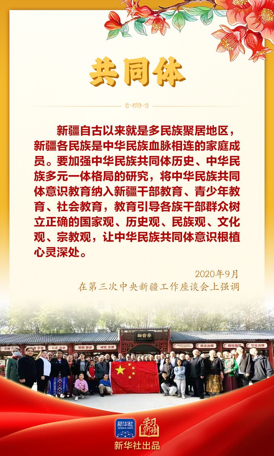 今年是新疆维吾尔自治区成立70周年。党的十八大以来,习近平总书记在不同场合对做好新疆工作、加强民族团结作出生动阐释,为铸牢中华民族共同体意识指引方向。