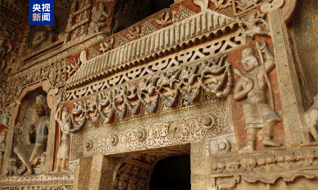 今天,经过15个月的系统性维护,世界文化遗产云冈石窟第九窟正式恢复对公众开放。第九窟位于云冈石窟群中部,是典型的汉风洞窟。石窟外观古朴厚重,崖壁上留存着岁月侵蚀的痕迹,其采用列柱式前后室结构,窟内四壁分层布龛,现存造像1140余尊(身)。