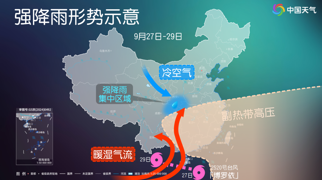 预计27日至29日,四川东部、重庆、陕西南部、湖北西部、河南、山东等地将有中到大雨、局地暴雨或大暴雨。