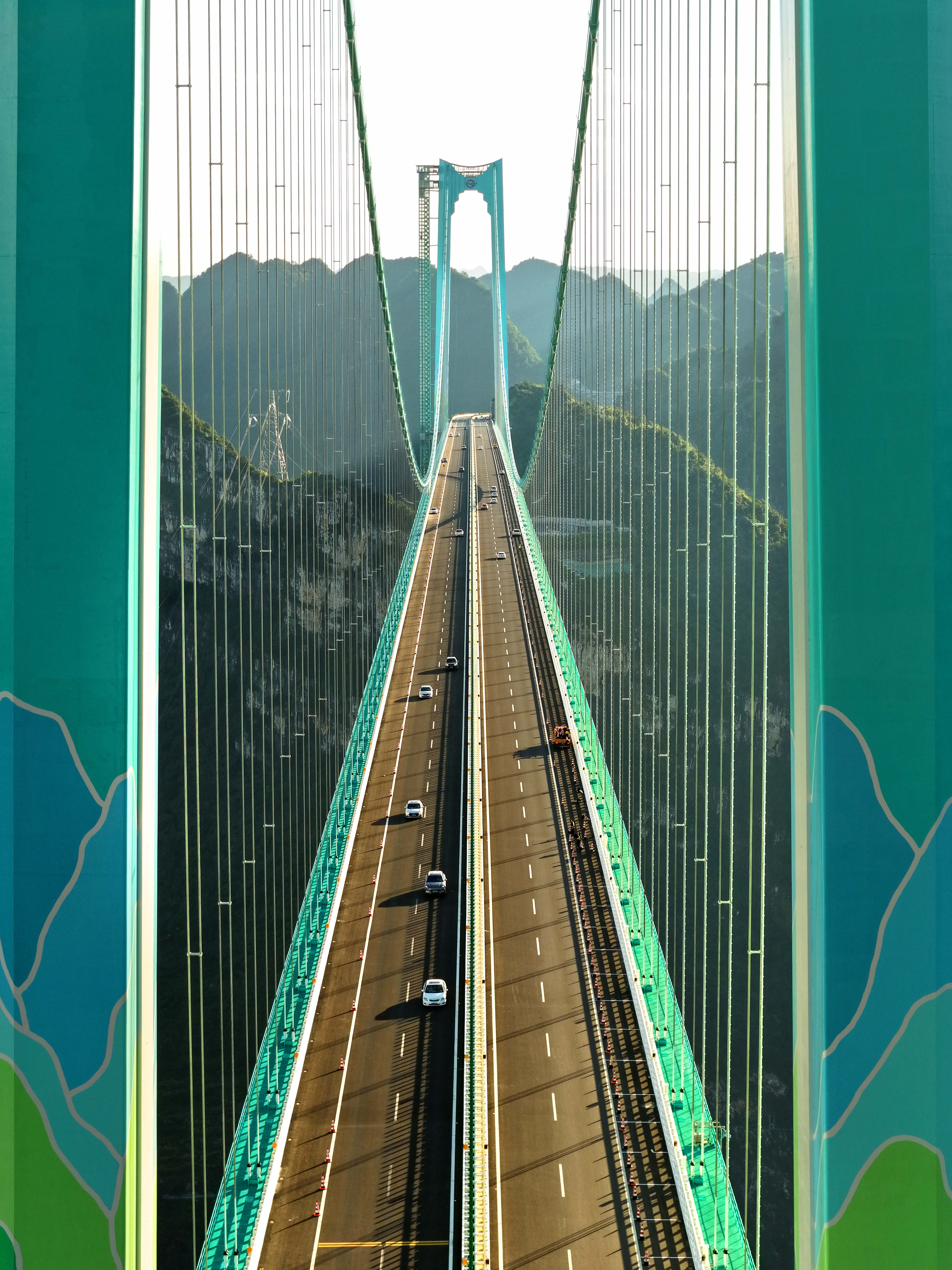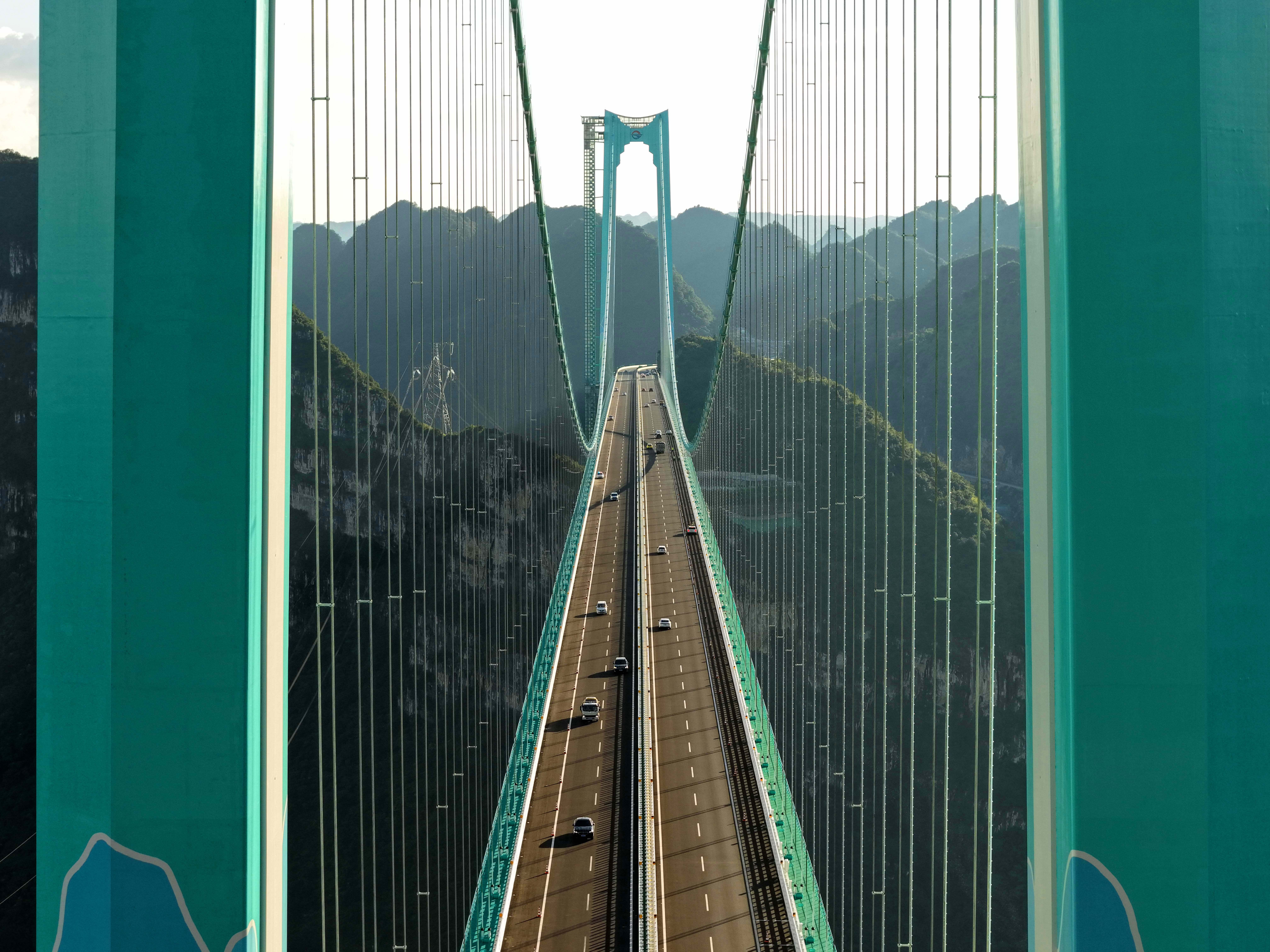 花江峡谷大桥是六安高速公路的关键控制性工程,连接贵州安顺市关岭县和黔西南州贞丰县两岸,因跨越被誉为“地球裂缝”的花江大峡谷而得名。大桥全长2890米,主桥跨径1420米,桥面到水面高度625米。大桥建成,主桥跨径居山区桥梁跨径世界第一、桥梁高度居世界第一,被称为“横竖”都是世界第一。大桥于2022年1月18日正式开工建设,2025年9月28日通车运营,历时3年零8个月。