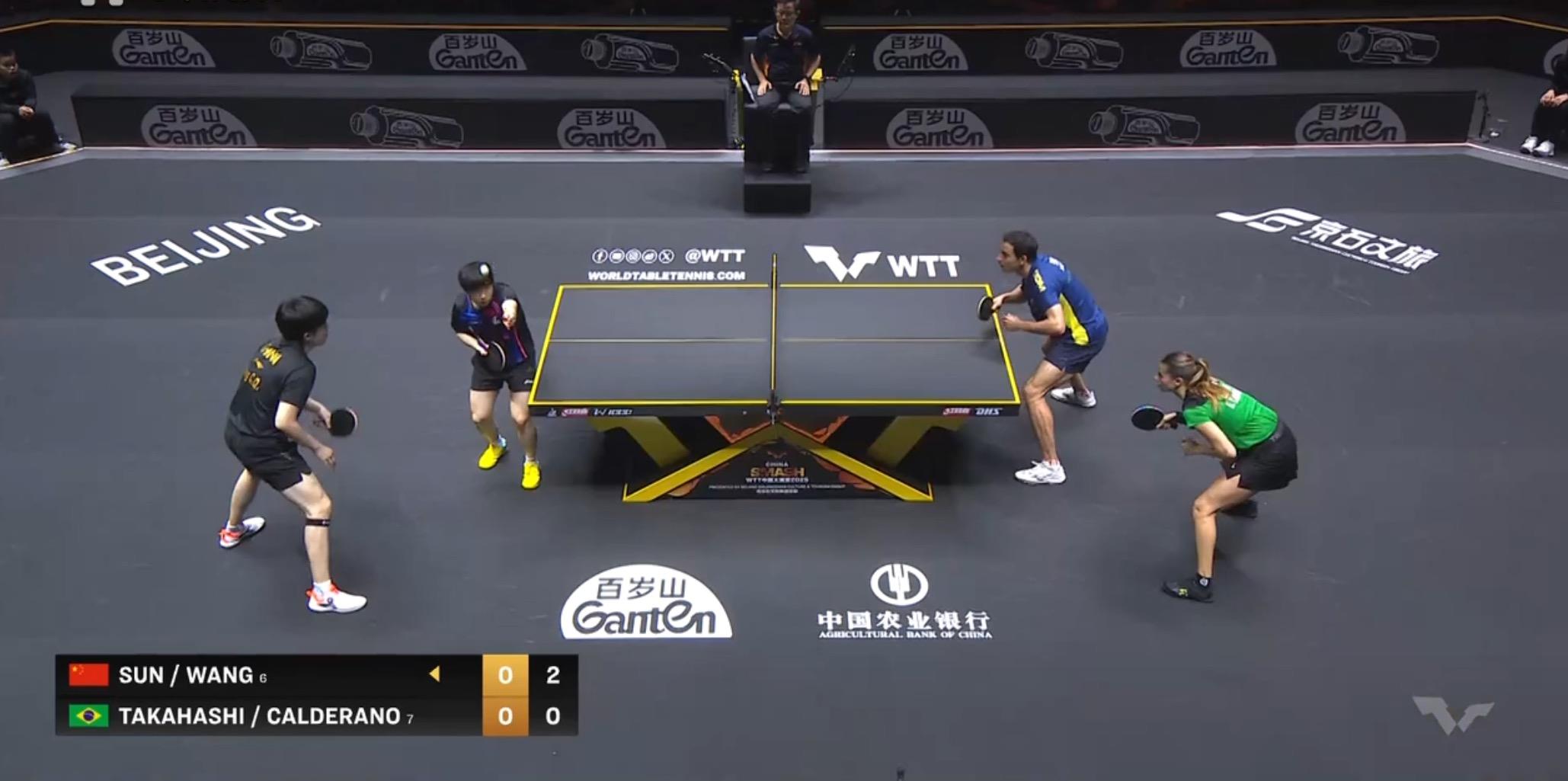 10月2日,WTT世界乒联中国大满贯在北京首钢园继续进行。在刚刚结束的一场混双半男单1/8决赛中,中国队组合王楚钦/孙颖莎以3:0战胜巴西队组合雨果·卡尔德拉诺/高桥·布鲁娜,与队友组合黄友政/陈熠会师决赛,国乒提前锁定本站比赛混双项目冠亚军。