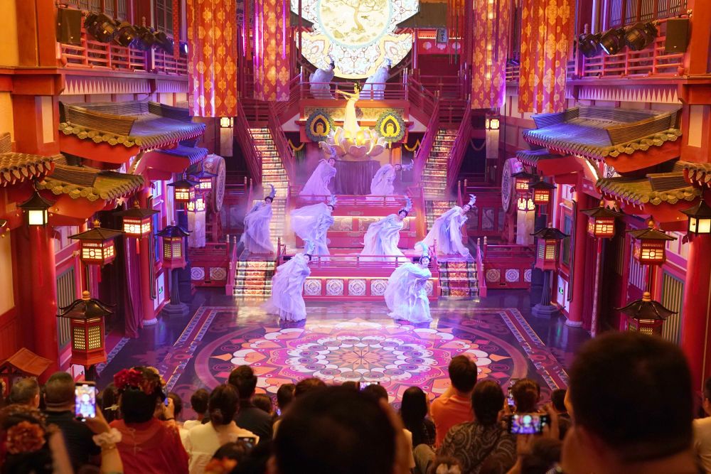 2024年5月19日,游客在西安长安十二时辰景区观看表演《霓裳羽衣舞》。“长安十二时辰”主题街区将唐朝文化与现代旅游相结合,让游客仿佛置身于千年前的长安城。近年来,西安积极推进产业升级和文旅融合,以中华优秀传统文化创新创造活力助推经济社会高质量发展,如大唐不夜城一样火爆“出圈”的文旅项目层出不穷。