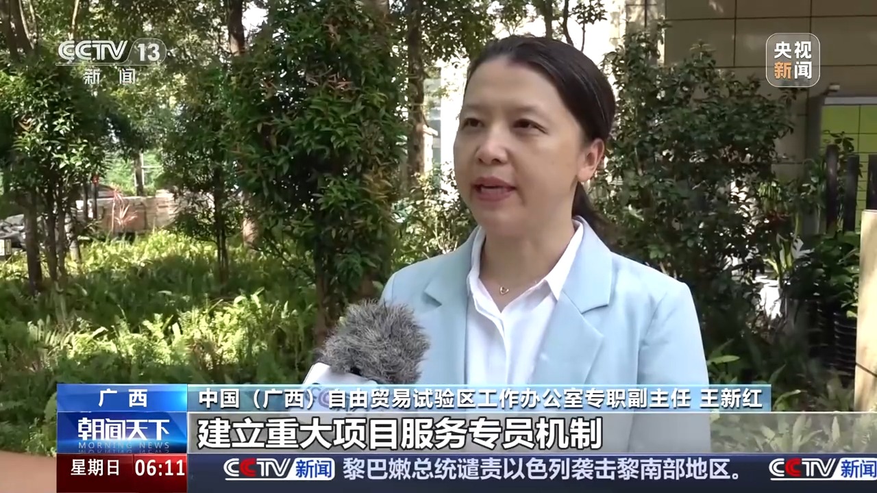 中国(广西)自由贸易试验区工作办公室专职副主任 王新红:定期举办外资企业圆桌会,建立重大项目服务专员机制,及时帮助企业解决难题。下一步,我们将全面对标国际高标准经贸规则,利用面向东盟的优势,在人工智能、数字经济、服务贸易等领域,大胆探索,以制度型开放推进高质量投资。