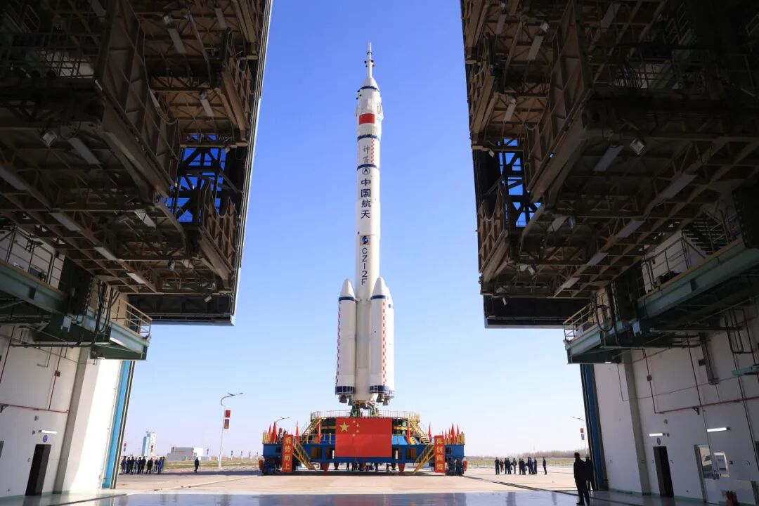长征二号F遥二十二运载火箭转移到待发测试工位