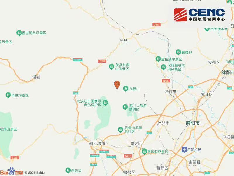 四川成都彭州市发生3.9级地震 震源深度13公里