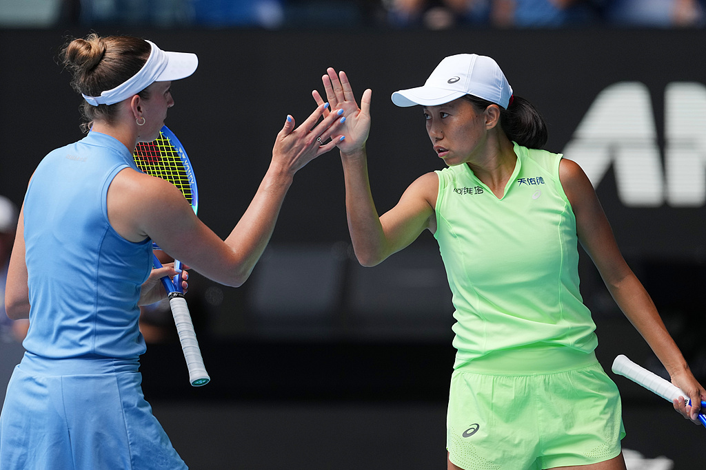 1月31日,2026澳网女双决赛,张帅/梅尔滕斯组合7-6(4)、6-4,总比分2-0战胜达尼丽娜/克鲁尼奇夺得冠军。时隔7年再战澳网决赛,张帅夺得个人大满贯双打第3冠。
