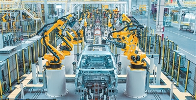 安徽芜湖的奇瑞生产车间内,机械臂在组装汽车。芜湖市委宣传部供图