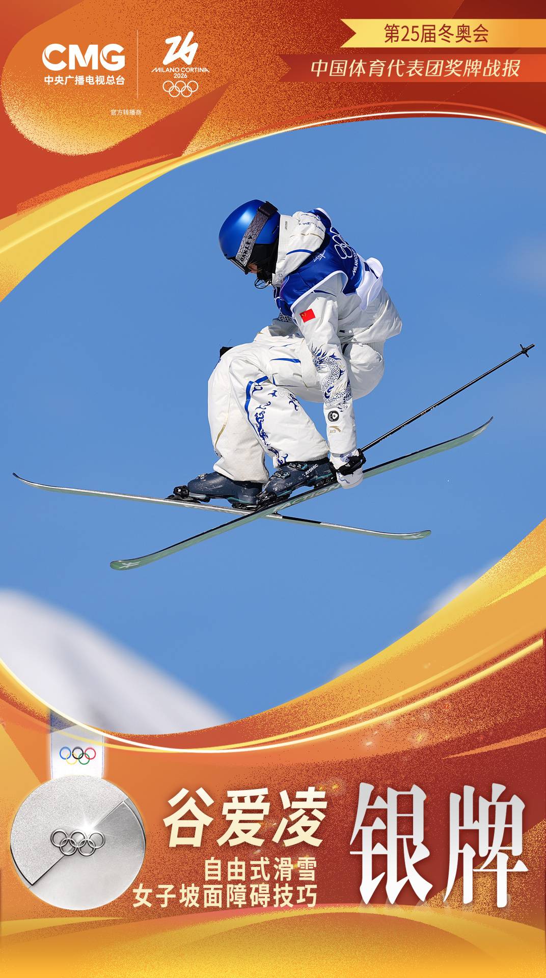 谷爱凌夺得米兰冬奥会自由式滑雪女子坡面障碍技巧银牌