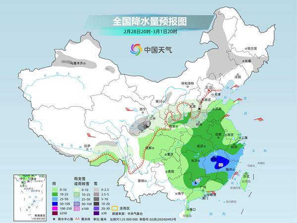 而雨雪还没有停歇的意思,今天开始至3月2日,中东部新一轮雨雪过程又将来袭。