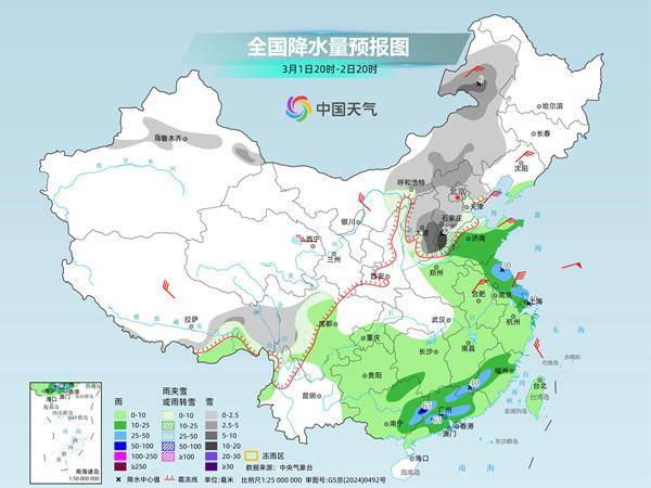 新一轮降水过程今天起至3月2日又上线,雨雪影响范围将超20省区市。雨雪强度较强、强降雨中心分散,北方多地将有小到中雪或雨夹雪,局地大雪或暴雪;南方大部以降雨为主,部分地区有分散性暴雨,局地伴有强对流天气。